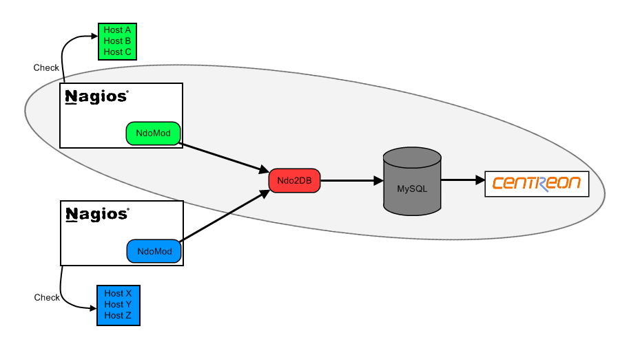 $ sudo vim /usr/local/nagios/etc/nagios.cfg # EVENT BROKER OPTIONS # Controls what (if any) data gets sent to the event broker. # Values: 0 = Broker nothing # -1 = Broker everything # = See documentation event_broker_options=-1 # EVENT BROKER MODULE(S) ... # Example: # # broker_module= [moduleargs] broker_module=/usr/local/nagios/bin/ndomod.o config_file=/usr/local/nagios/etc/ndomod.cfg #broker_module=/somewhere/module1.o